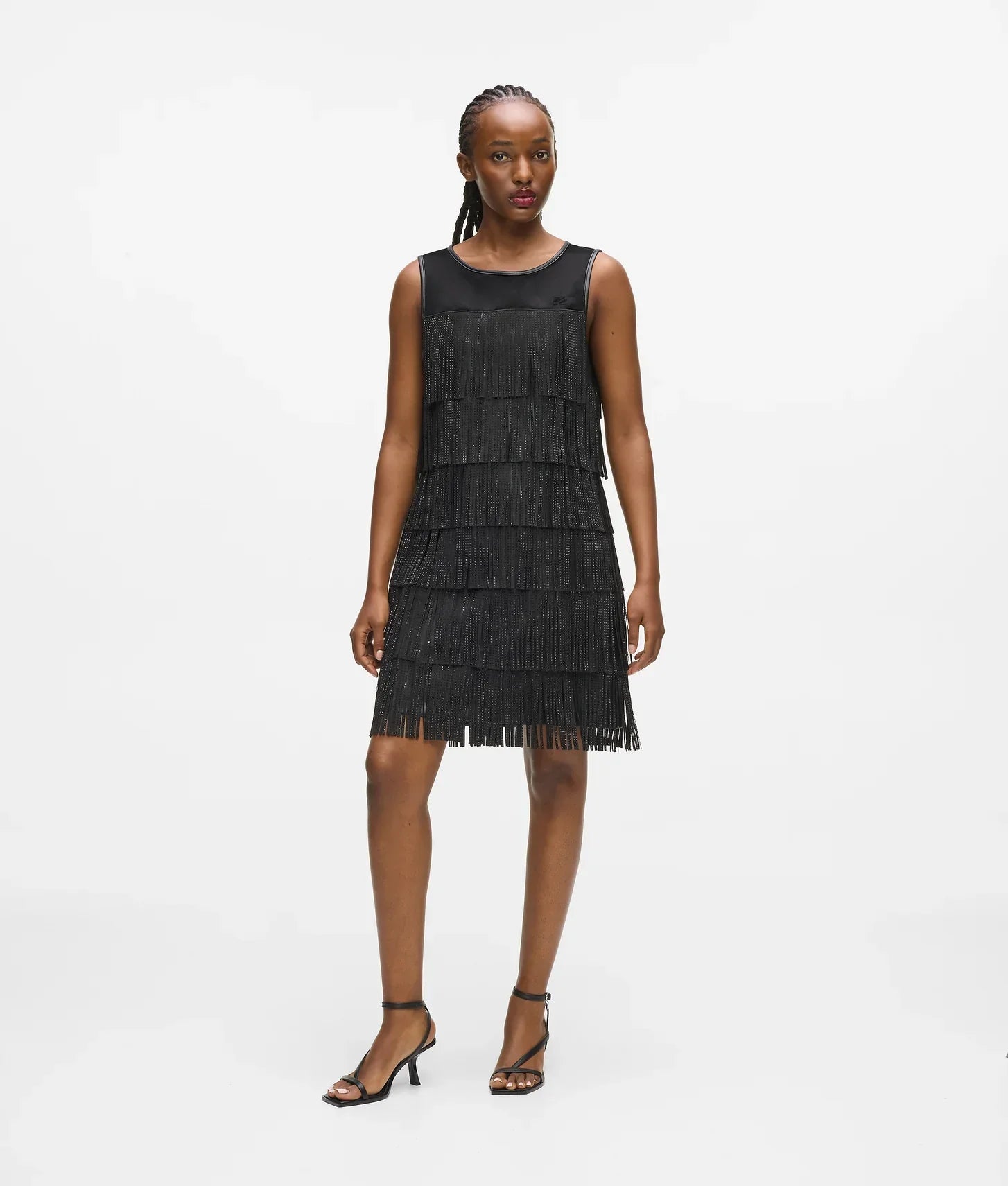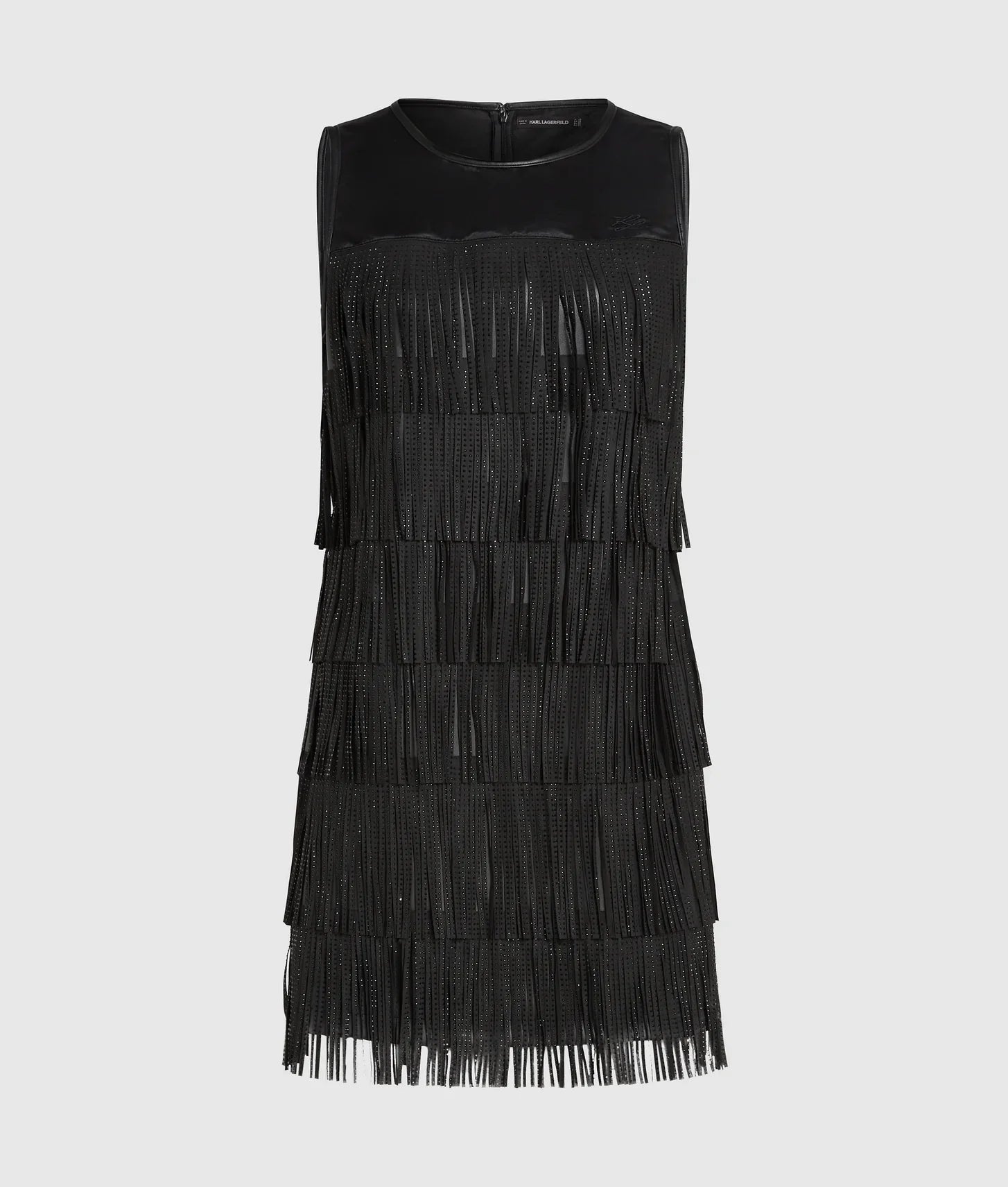 FAUX LEATHER FRINGE DRESS — PLAYFUL, STATEMENT-MAKING STYLE