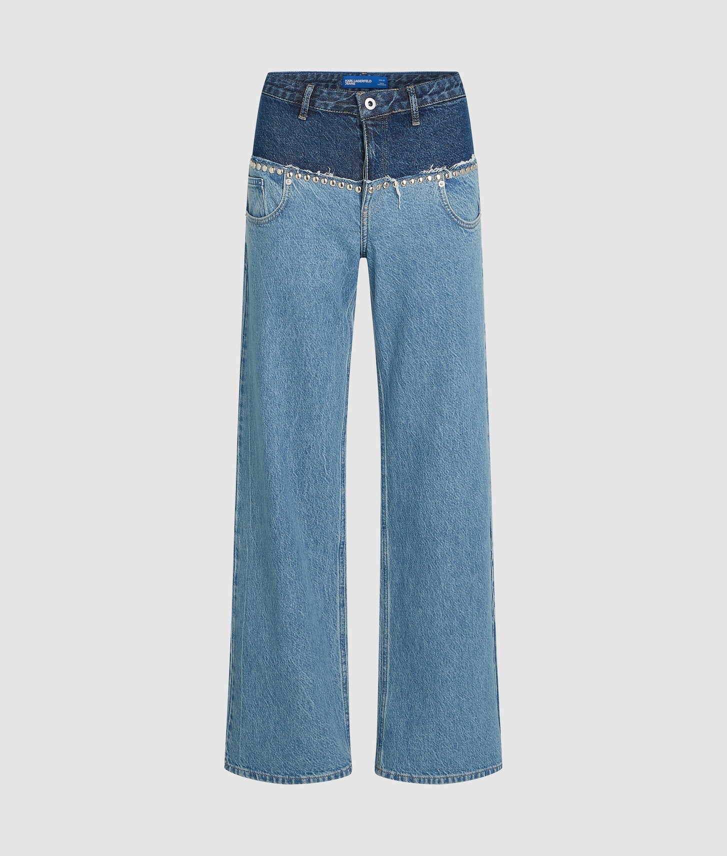 Bold, sustainable, and effortlessly stylish, the Colorblock Relaxed Jeans fuse comfort, attitude, and signature KARL LAGERFELD JEANS detailing for a contemporary denim essential that commands attention.