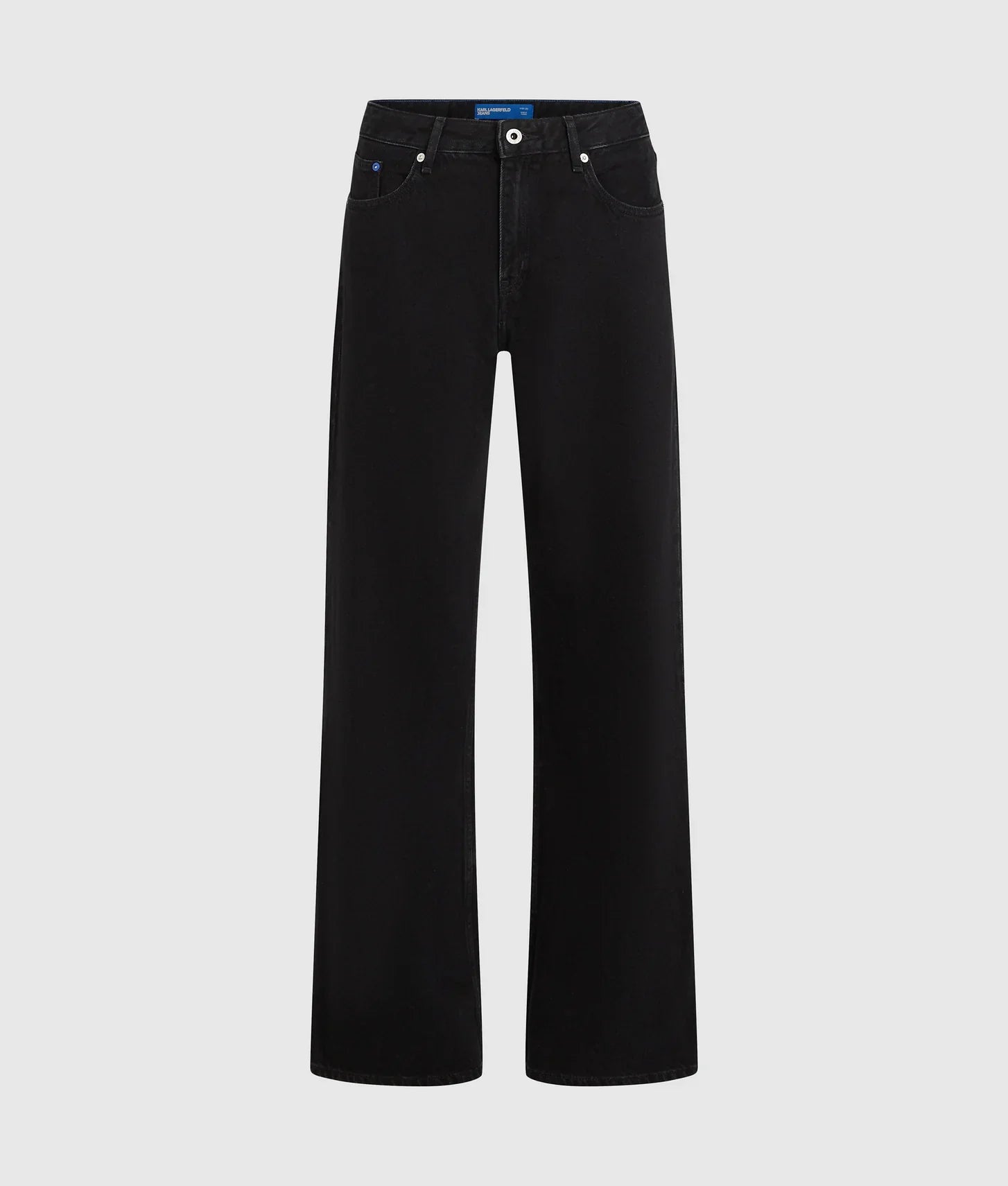 Signature KARL LAGERFELD JEANS details elevate the design, including a branded shank button at the fly closure, a leather logo patch at the back waistband, and subtle K-initial embroidery at the back pocket. These refined accents add a touch of designer identity to a timeless, easy-to-wear silhouette.