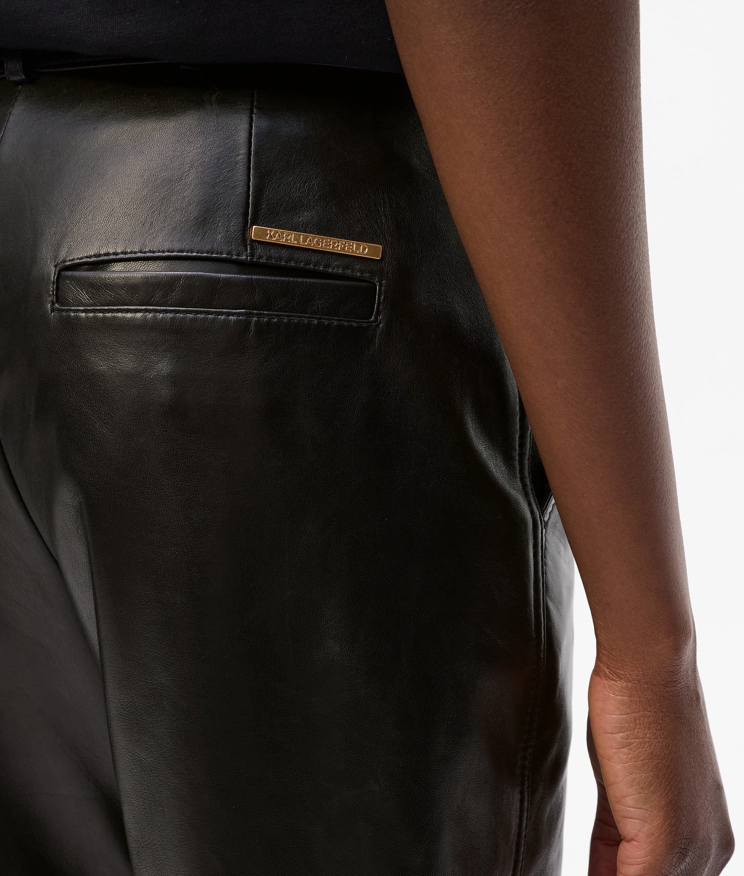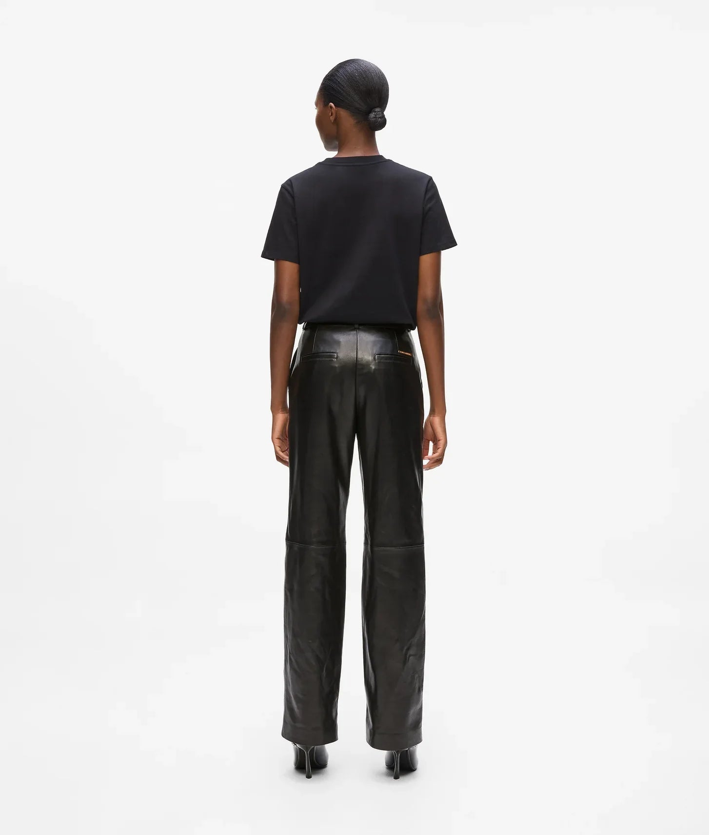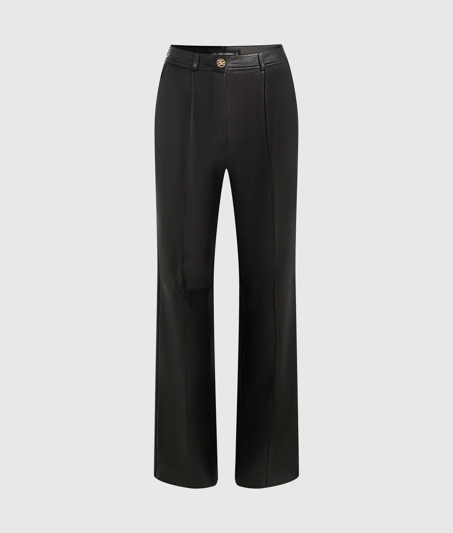 • Sleek straight-leg leather pants for a luxe, modern edge