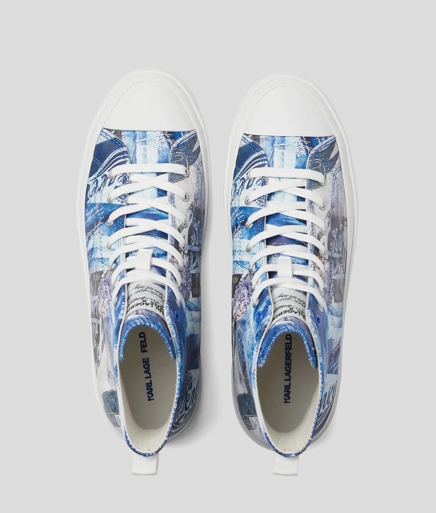 The high-top design ensures ankle support and a confident stance, complemented by a 3.5 cm low-profile heel, providing subtle elevation without sacrificing comfort. The cotton lining and footbed offer breathability and all-day wearability, while the durable 100% rubber outsole features KARL LAGERFELD JEANS branding for signature authenticity.