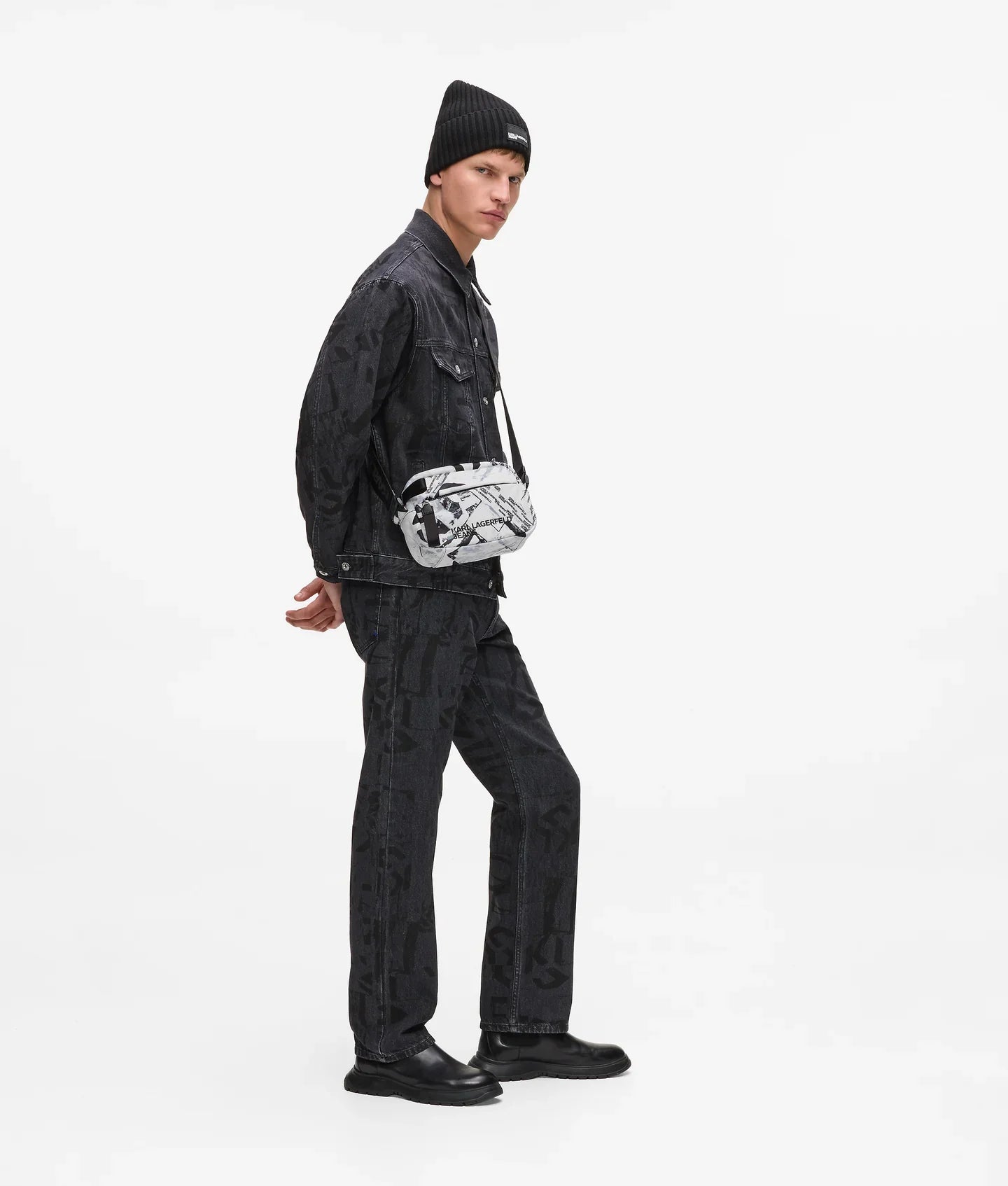 Versatility is key with the adjustable crossbody webbing strap, allowing you to wear the bag across your body for hands-free convenience or over the shoulder for a more relaxed silhouette. The all-over graphic print, accented with the KARL LAGERFELD JEANS logo at the front, gives the bag a modern, bold edge, making it a standout accessory in any wardrobe.