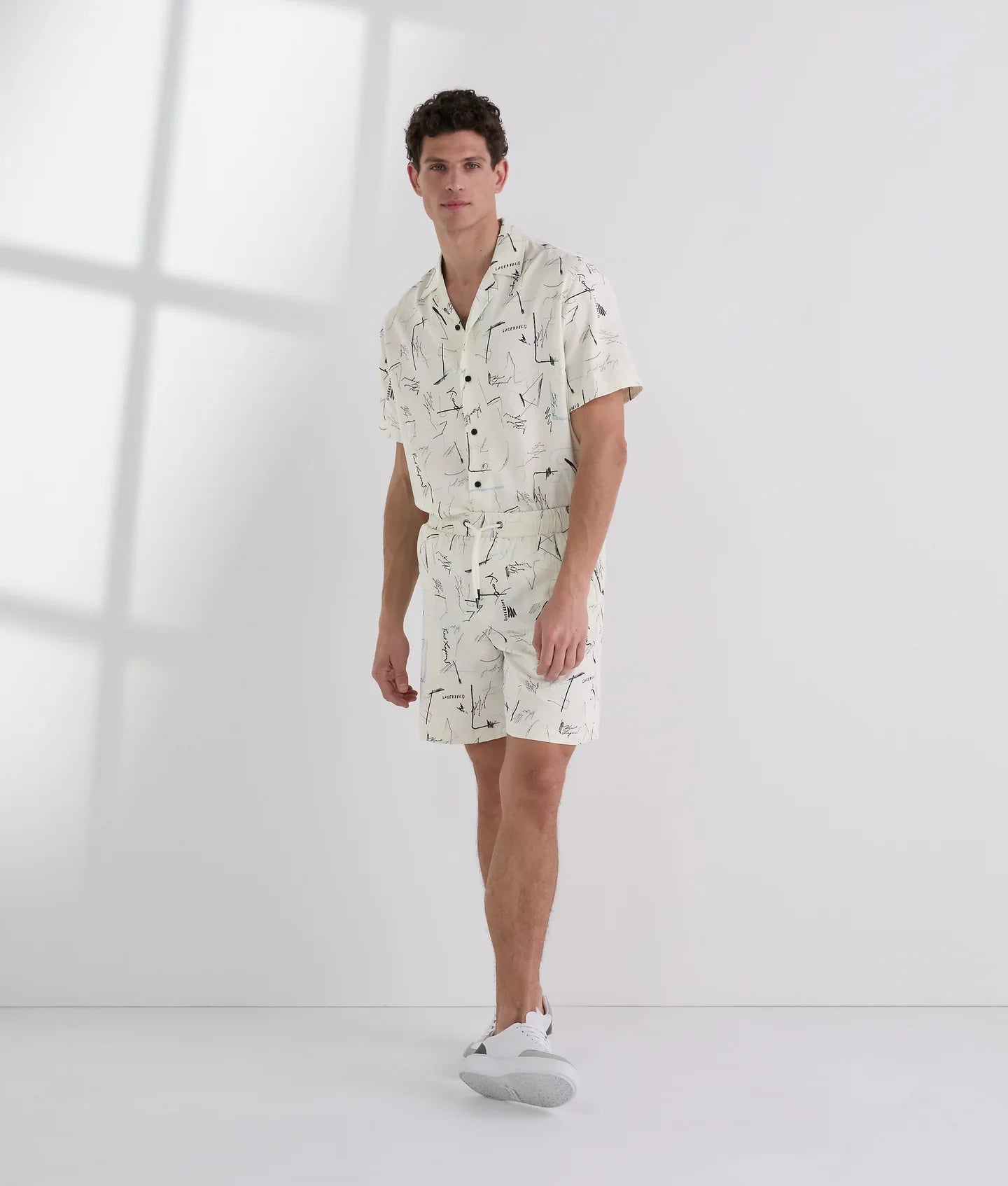 Make a bold style statement with these All-Over-Print Shorts, designed to celebrate the creative legacy of Karl Lagerfeld. Featuring a playful print inspired by original sketches from Karl Lagerfeld’s iconic archive, these shorts bring artistic energy to warm-weather dressing while remaining effortlessly wearable.